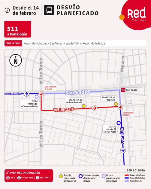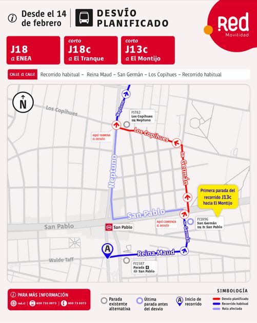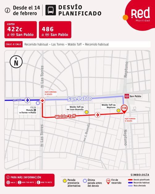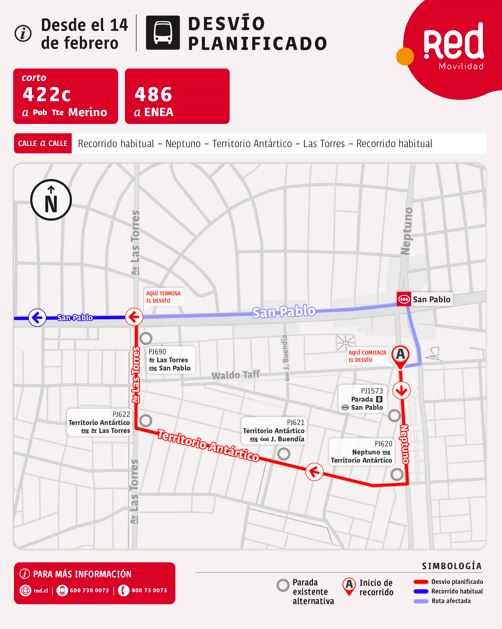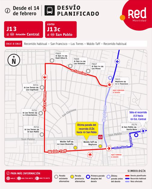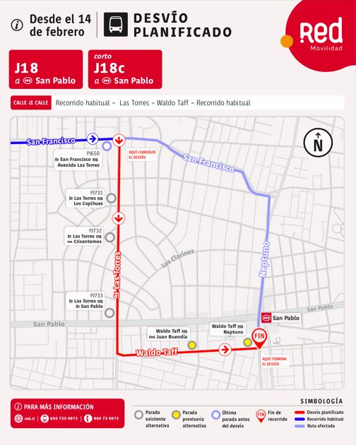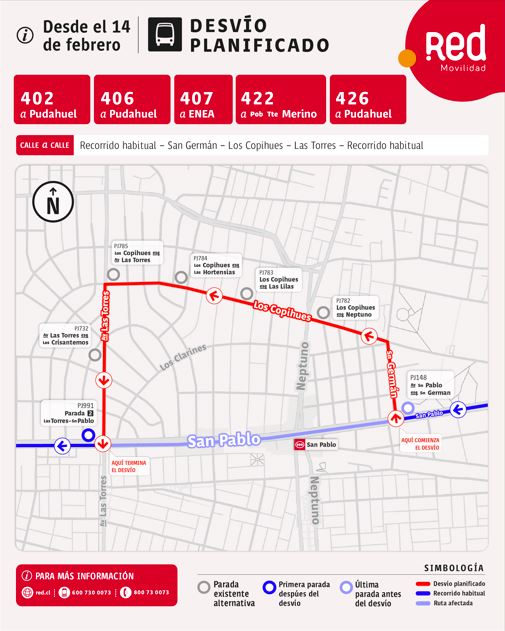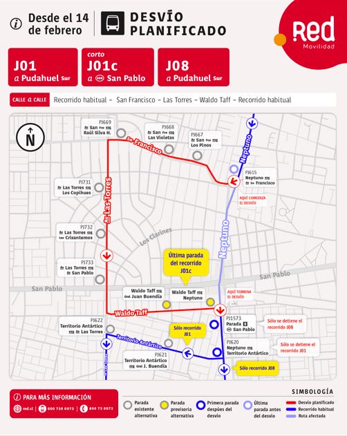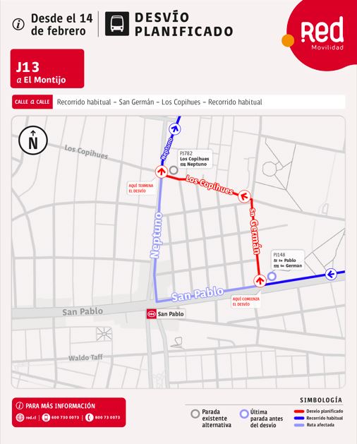 A partir del sábado 14 de febrero se realizan obras viales en la comuna de Lo Prado, específicamente en la intersección de San Pablo con Neptuno, ocasionando cambios en los trazados habituales de varios recorridos de buses de Red Movilidad por un período aproximado de tres meses.