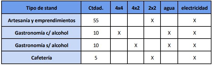 2. Los stand estarán compuestos de la siguiente forma:
